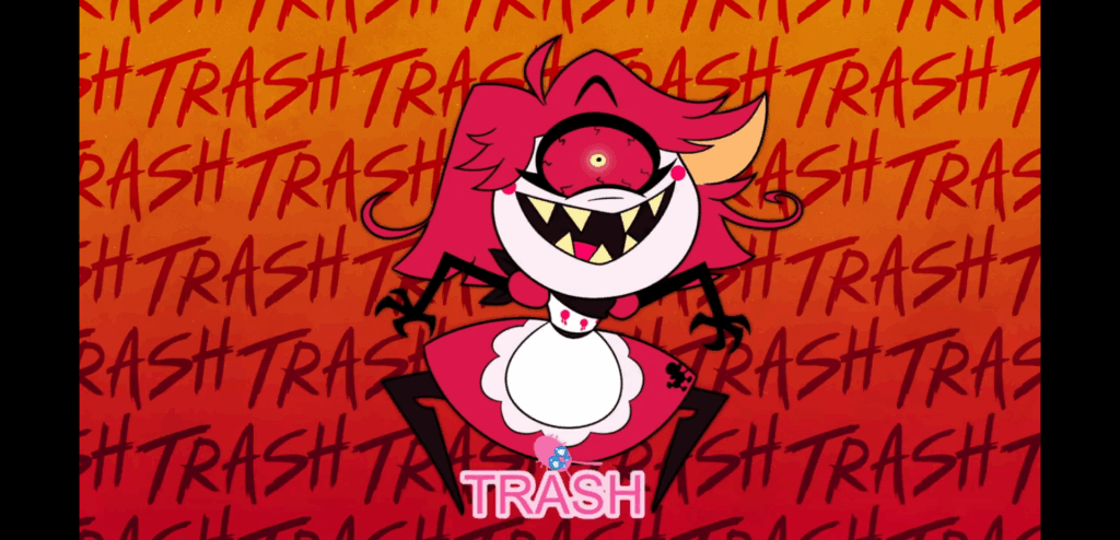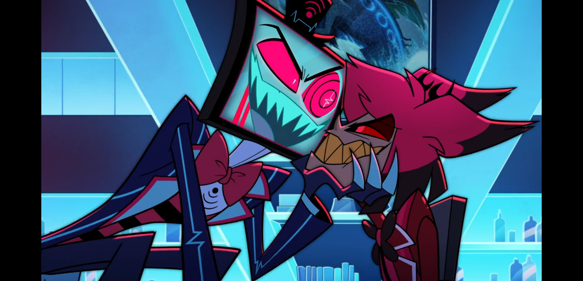 Alastor wanted her to fix his staff and restore to him his power after his stinging loss to Adam, but she relented and suggested he could fix his own problems. So he concocted a scheme, and set about picking a fight with Vox, someone who seemingly looked up to him before and wanted to become partners (possibly romantically) but was summarily rejected. Alastor explained very candidly to Vincent, that there are no friends or partners in hell, that power is seized for one and one alone, and that he did not expect to be equals.