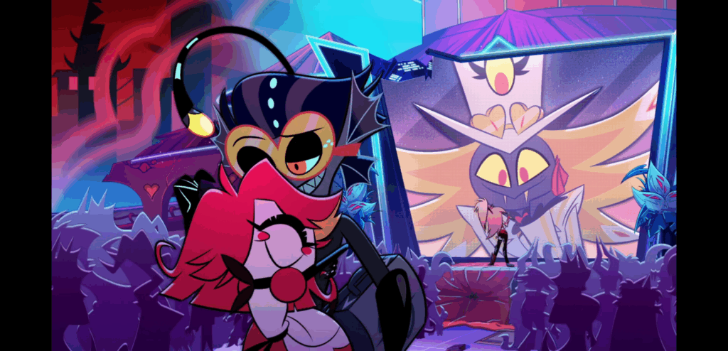 But circling back to sour taste in your mouth, like last season, this season is only eight episodes. And while it was an amazing eight episodes, the pacing once again felt too rushed. An inordinate amount of time was spent on Charlie’s decent into madness, which while worthwhile, took away from what I would consider much more important plot points surrounding Angel and Husk, Angel and Val, Carmella and Zestial, and a handful of other details that if they had one or two more episodes, would have made a world of difference in setting the table for a truly magnificent ending. It was one thing to maybe pull punches in the first season when you’re not 100% confident in Amazon greenlighting you for more seasons, but the runaway success of this show has certainly motivated Vox Bezos into funding them through I believe three or four seasons. Now is the time to really capitalize on that when you have a story to tell, and yet Medrano is most certainly edging us. I don’t completely hate that. In fact, I’m usually on record in this blog of telling you when I think animated series suck because they blow their loads too early in the show and end up finishing weak as shit. But as I noted in the first season, and it holds true in the second, Hazbin does the classic anime trope of starting strong, losing steam in the middle, and then big fucking finale. And this time, I think that weakness comes from the writers acknowledging that because they have a season three, four, and more, they can take their time. Okay, but at least spend two minutes on Carmella and Zestial. Or just Carmella. Twice now she has fought for a belief we still don’t know anything about.