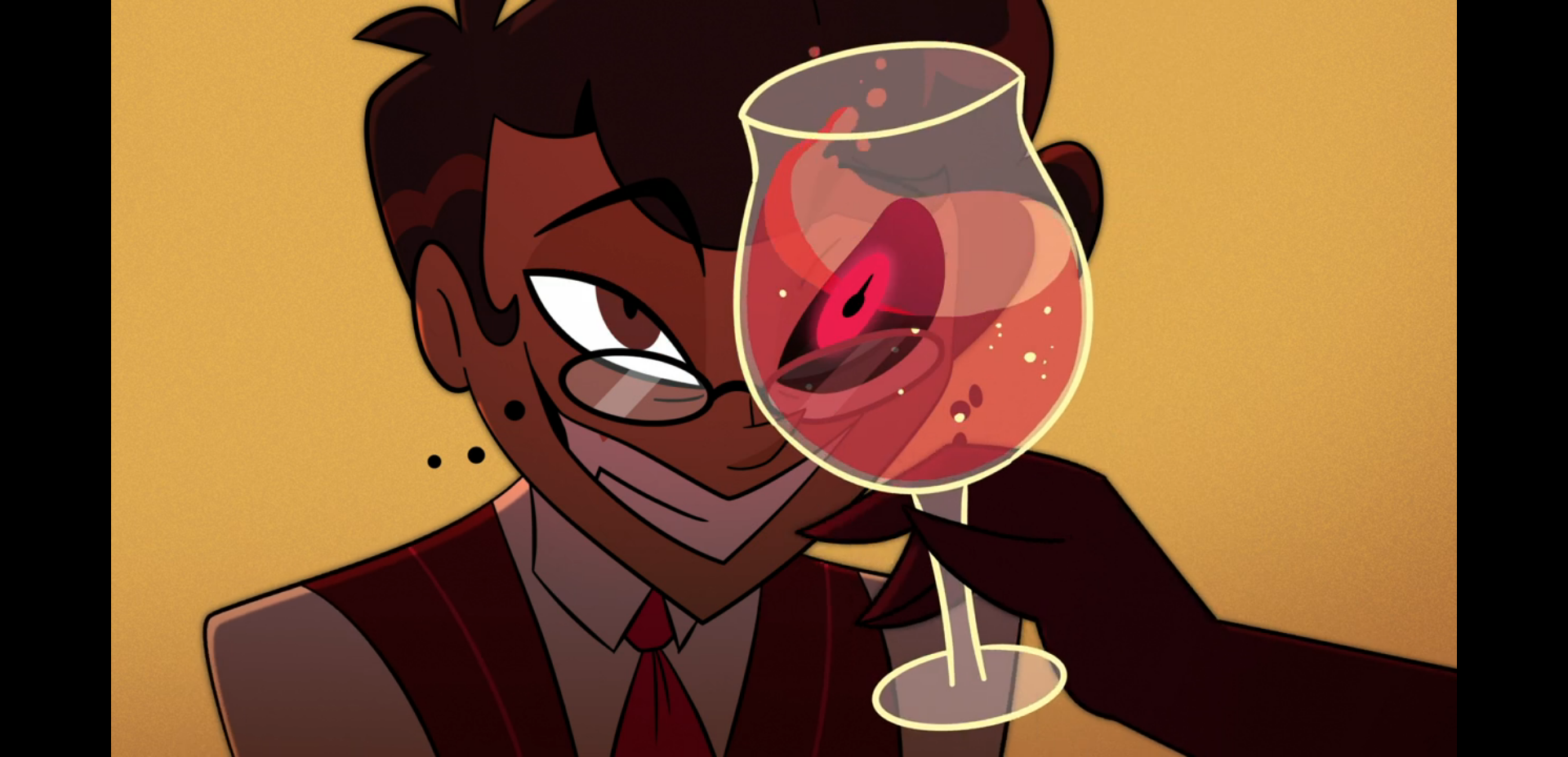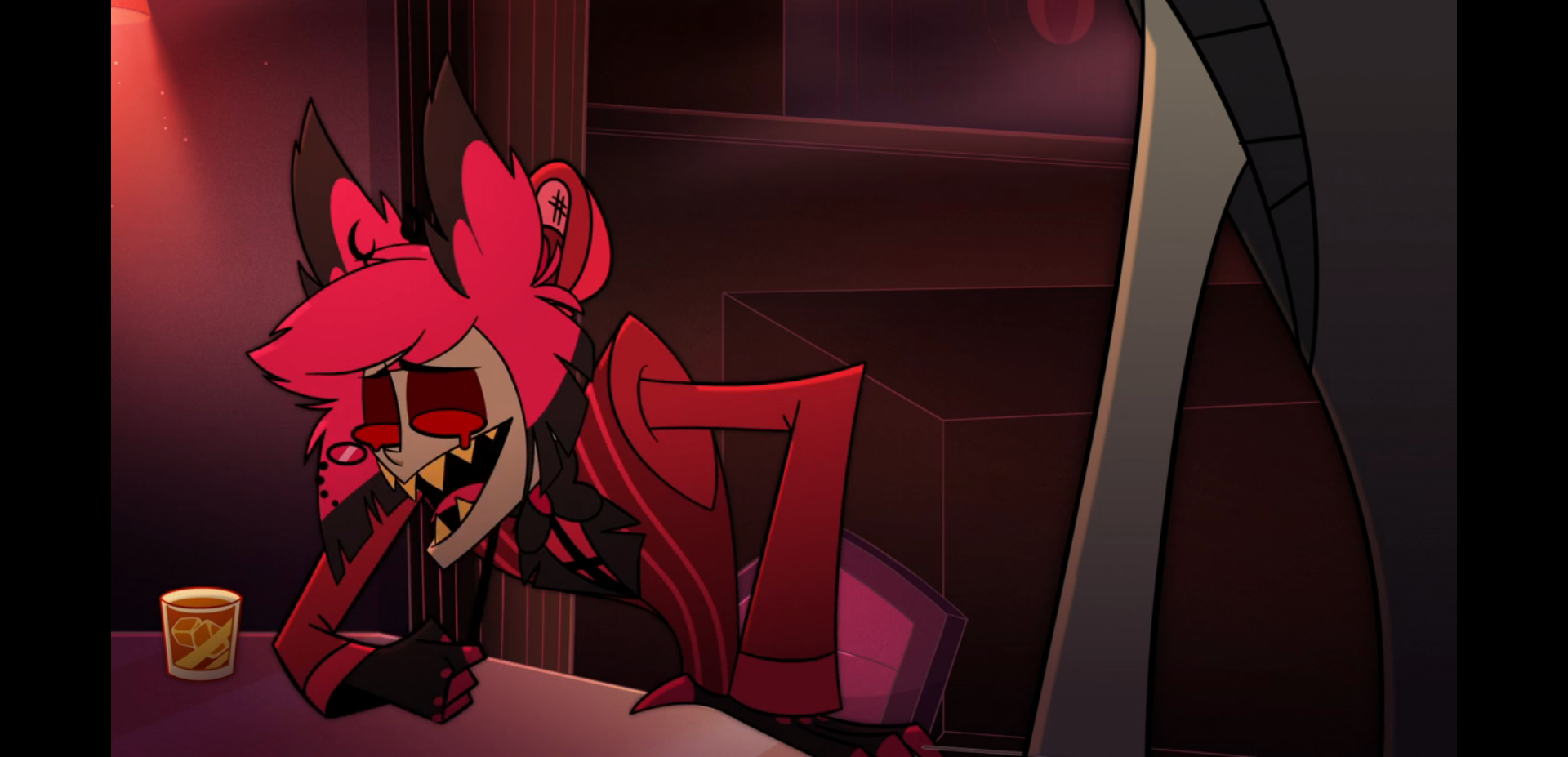 Alastor wanted her to fix his staff and restore to him his power after his stinging loss to Adam, but she relented and suggested he could fix his own problems. So he concocted a scheme, and set about picking a fight with Vox, someone who seemingly looked up to him before and wanted to become partners (possibly romantically) but was summarily rejected. Alastor explained very candidly to Vincent, that there are no friends or partners in hell, that power is seized for one and one alone, and that he did not expect to be equals.
