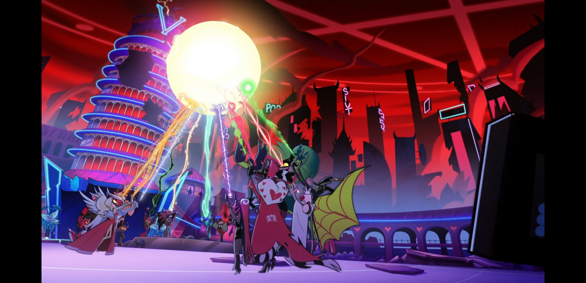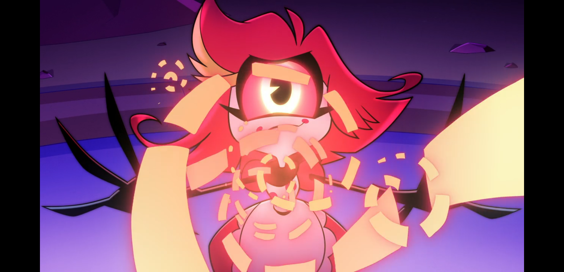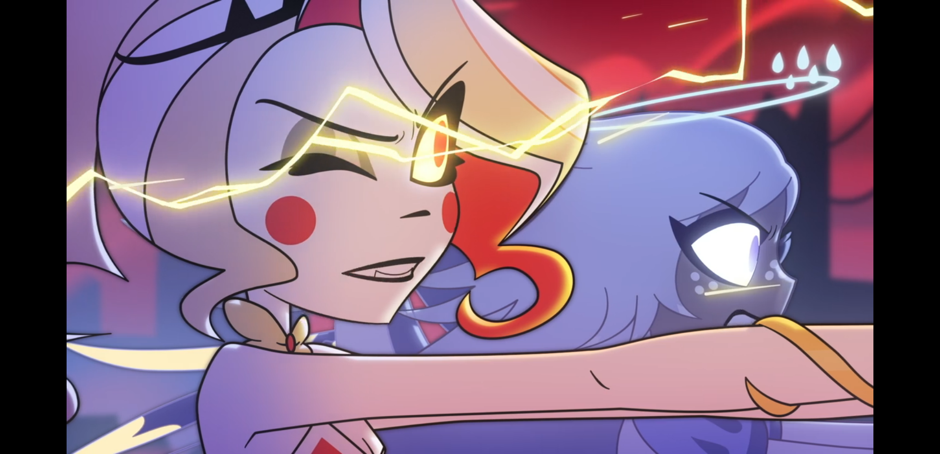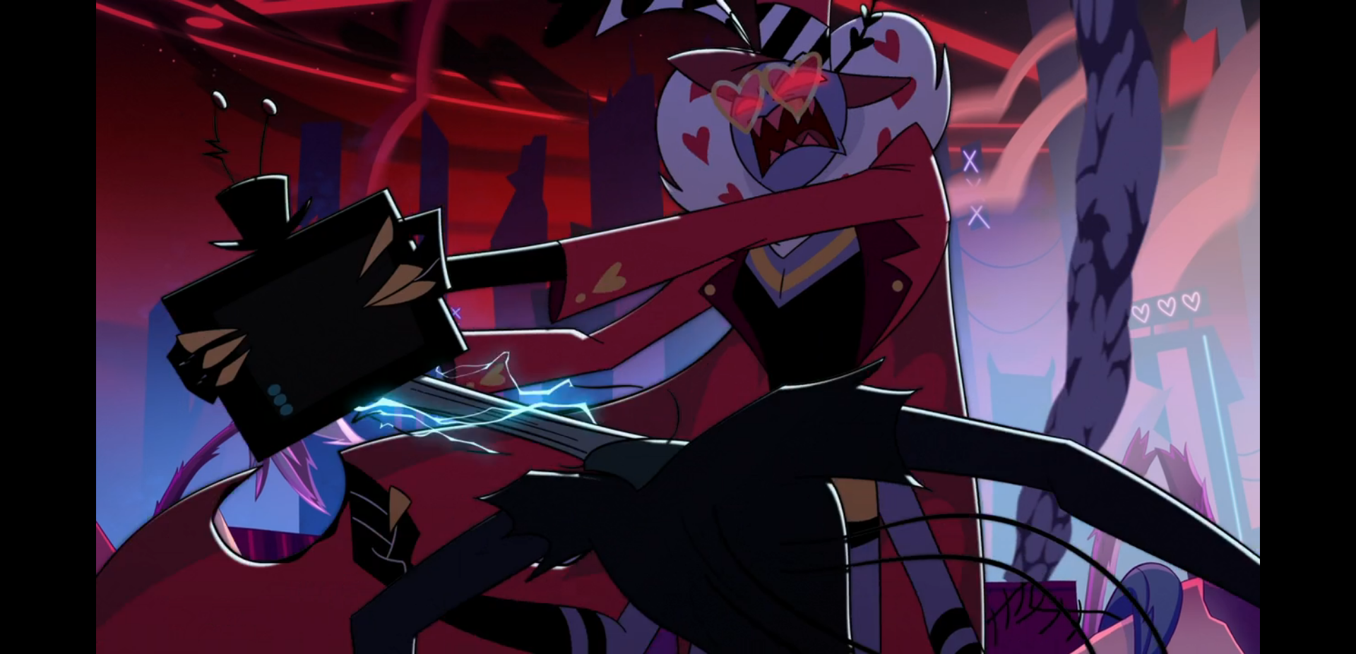 Alastor created enough of a ruckus to get Vox to fight him, and then called a truce and offered to be captured on the conditions that his vassals be released, and Vox was not to lay a hand on Charlie Morningstar. Vox, completely ADHD’ing over Alastor surrendering to him, glossed over that fact when sealing the deal. This gave Alastor two important deals, one from Charlie to do him a favor, and the other with Vox not to touch Charlie. But how would these be executed? Well it seems in Vox’s big jubilation over his pending victory over Heaven with a Big Fucking Space Laser powered by Lucifier and inviting Charlie to humiliate her, he once again fell right into Alastor’s predictable trap. First he traded Charlie’s favor for having her proclaim Vox is the strongest sinner in hell. That seemingly broke his bond with Rosie. Then he couldn’t help but put his hands on Charlie’s shoulders, which broke his deal with Alastor. Just hands on shoulders. You’d think Vox was Joe Biden all the sudden, but a deal is a deal in Hell as Alastor warned, and that was enough to ensue their fight. Which, technically, Alastor didn’t really win either. He spent so much time mucking with Vox’s shark pet that the deed was kind of done by Val and Vel, who hauled his screen-only body away with them. Does this mean Vox will still be alive and able to plot or scheme himself back to power? Or is he nothing without his media empire, now in control of presumably Val and Vel?